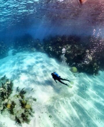 Beneath Bermuda’s turquoise waves, a ghostly shipwreck lies encrusted with coral, tangled in history, silent, mysterious, and decaying.
